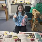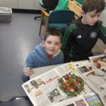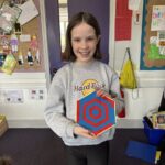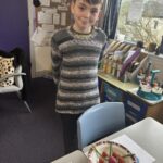 In art we did weaving we started off with using paper and we had to draw on it then after that we had to bring in old clothes that we could cut up and use for the weaving and we put a cinnamon stick and a bit of wool so we can hang it up. ‘’ I liked weaving’’ said Poppy happily. – Kevin