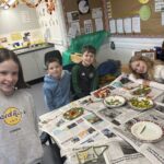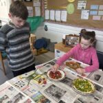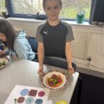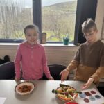 Topic Egypt we have learned about gods like Anubis, Hathor Ra, Horis and more it was so fun. Made Egyptian flatbread we used flour salt and pepper I think eggs and milk. Then we eat the flatbread in school we had flatbread, dates, dips and juice. Next Jack brought a pyramid cake in and everybody loved it. – Aidan