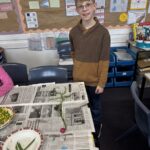 In maths we did 7 times tables & 6 times tables & compasses & angles & triangles “I liked doing coordinates.” said Imogen softly. We also did money & chimney sums. – Ian-Henry