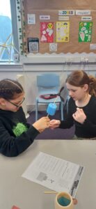 We started of looking at skeletons, how they change over time and the name of different bones, we combined this with looking at the joints and muscles and made our own model fingers demonstrating the hinge joint.