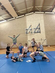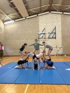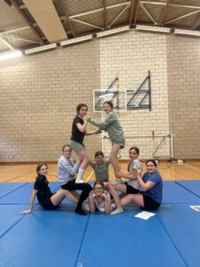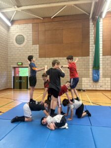 . The class had time to work on individual balances and then air balances. (Where we played competitive balance bingo)! We then spoke about if we transferred that into a group balance – talking about communication and trust! And put some of the skills together in group balance work.