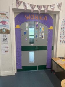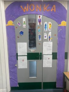 In P3/4, we have been reading Charlie and the Chocolate Factory by Roald Dahl. We have created a door display, imagined interviewing different characters and done some pieces of writing based on the book.