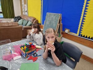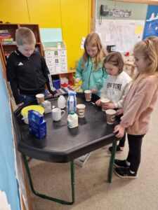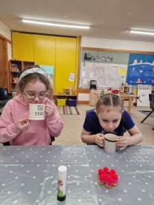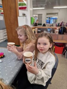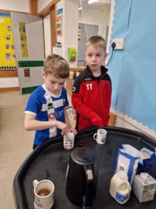 We loved being in the nurture room with Aimee this week because she brought in supplies for us to make a cup of tea. We got to do it ourselves and then sit and enjoy it together. There was different kinds of milk to choose from like oat, almond and cows milk, or we could choose to have it with no milk. There’s nothing better than a good cup o tae to git da day goin’! By P4