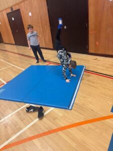 In P.E for the last few weeks, P3/4 have been learning some gymnastics skills. They have looked at different balances and we have had a lot of time learning how to do a forward roll. This week, the pupils put what they had learned into a short routine. They could add other elements to their routine if they felt confident. Next week, we will learn a few new skills and add these into the routines!