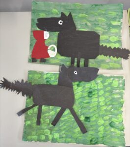 P2A have been painting a forest background for their collages.
