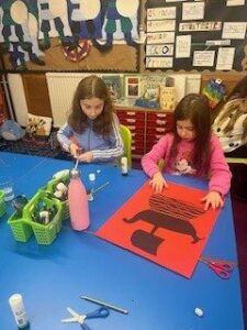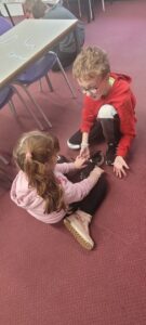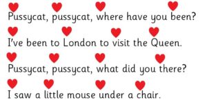 We have been continuing to reinforce our sense of steady beat using body percussion and we have also explored the relationship between beat and rhythm. A song that we have learned called ‘Pussycat Pussycat’ gave us an opportunity to learn about a question and answer style of song in music where we kept the beat by tapping while singing the questions and showing the rhythm of the answers by clapping.