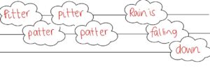 We have also been learning about pitch – how high or low a sound is and we have been using our singing voices to match the pitch that we hear. We can also use out hands to show if the pitch is high, middle or low. The song ‘Rain is Falling Down’ is one we have learned that has three different pitches.