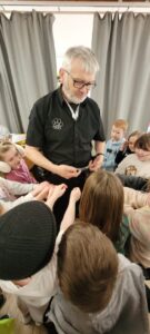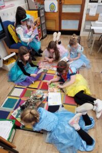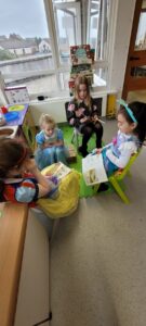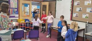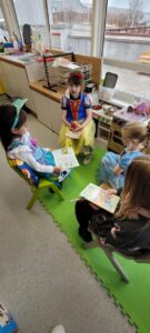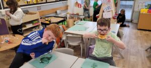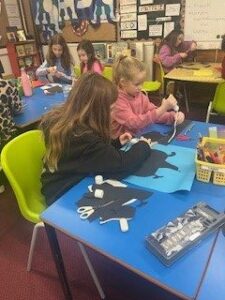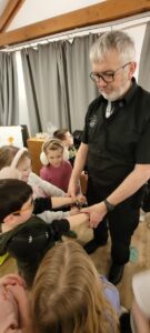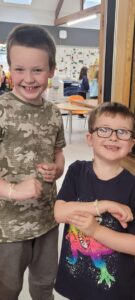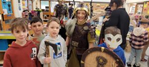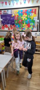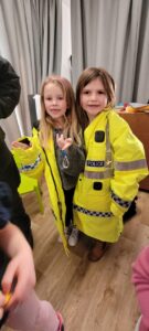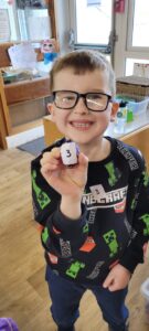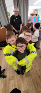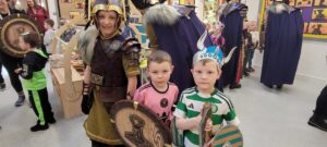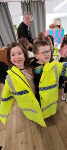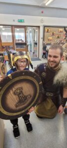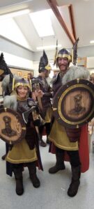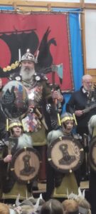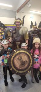 The Jarl Squad were excited to let us try on their brilliant helmets. We are very good at singing the Up Helly Aa song and we can even play it using our building blocks in class!