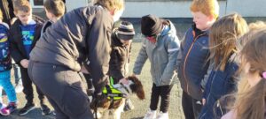 We enjoyed our visit from the local Dogs Against Drugs Team. We played with all the equipment and got to pet the dogs. We learned a lot about what they do in Shetland.