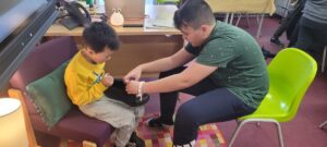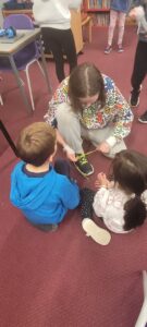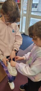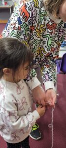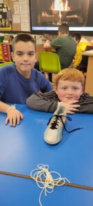 Our buddies helped us learn how to make friendship bracelets and how to tie our shoelaces.