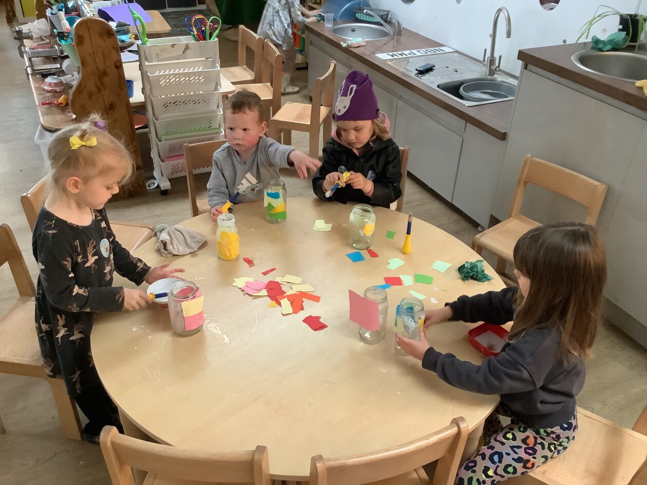 We spent the rest of the week stone painting, castle building, role play in the home corner, exploring outside, practicing our new sports skills in the playground and mark making with various resources. We also visited the Toddlers group for a Bookbug session, this was to introduce the younger members of our group to some of the children who will be joining us after the holidays.