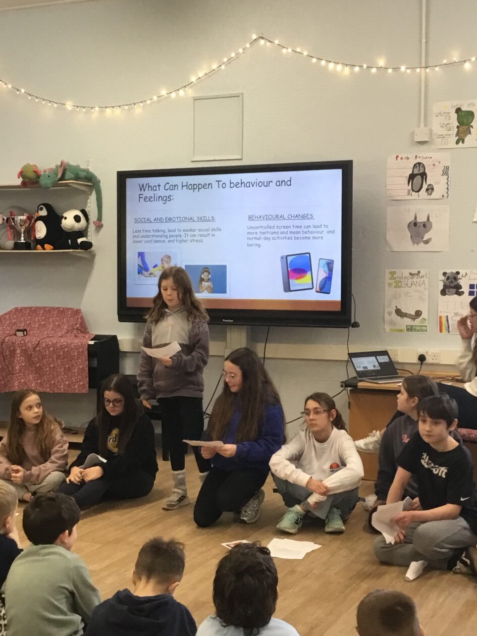 As part of their topic, they have been looking at their own screen time by keeping a screen time log and reflecting on their personal use compared to the recommended average, helping them to better understand what health screen time looks like.