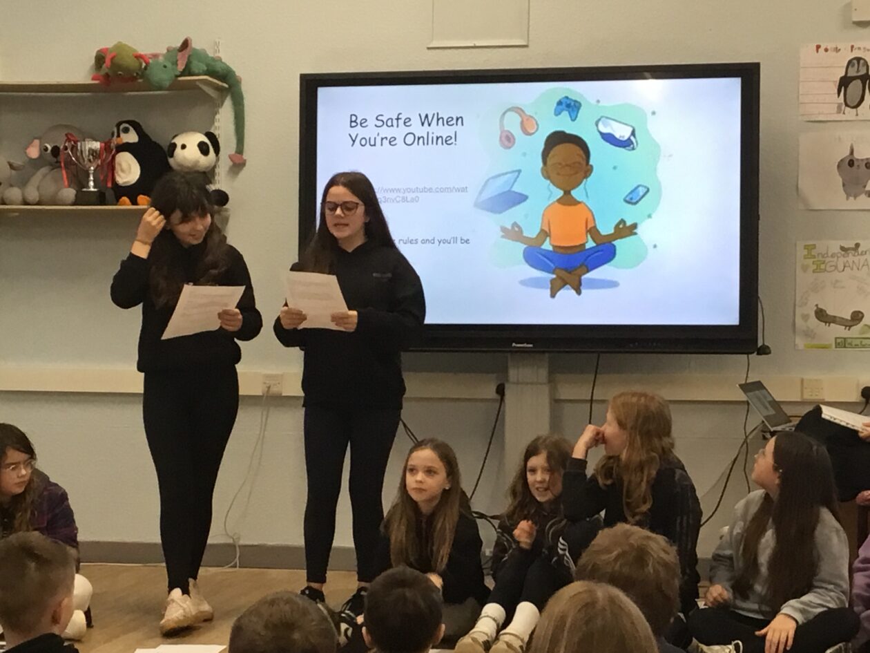 Our P6 & P7 topic this term is internet safety. The past two assemblies have been led by our P6 & P7 bairns, who shared the knowledge they have gained about staying safe online and promoting healthy online habits.