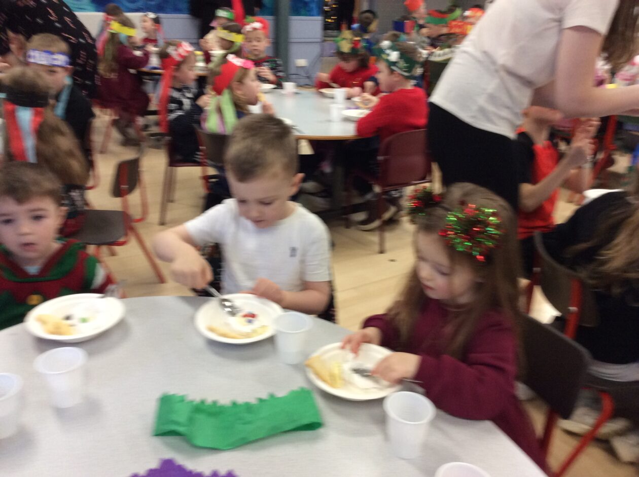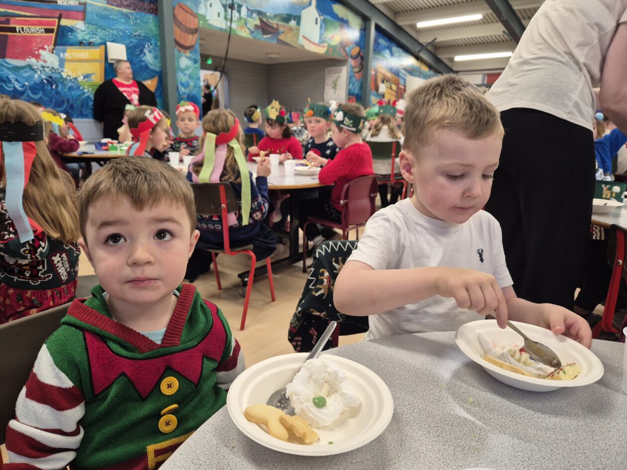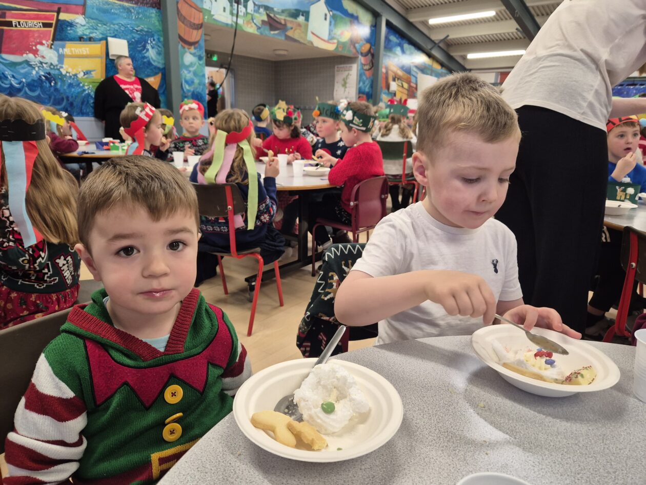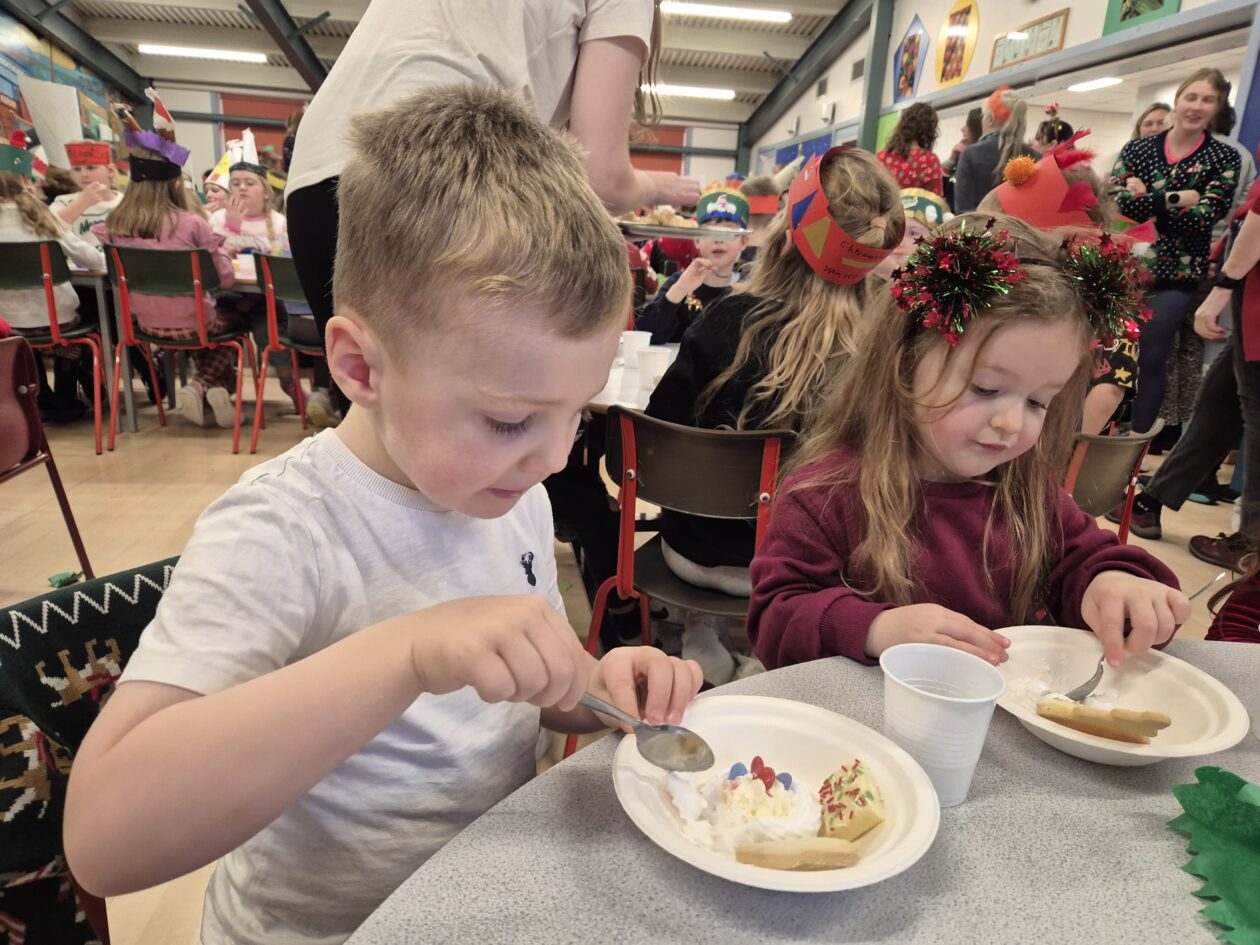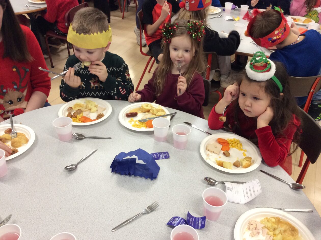 Some of our pupils enjoyed a delicious christmas dinner prepared by our wonderful canteen staff! They sat really well, and seemed to enjoy seeing the pupils all the way from primary one up to S4.