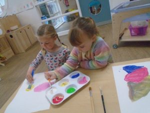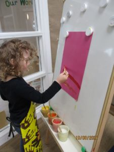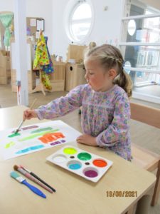 We’ve also been developing our gross motor skills such as shoulder, arm and hand strength and our fine motor skills such as more specific finger and movements indoors through painting and mark making.
