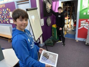 Enjoyment – Fun and enjoyment was everywhere to be seen including dance with P1/2, puzzles and games with P3/4, darts, computing and others. How lovely to see our pupils engaged and enjoying their various different activities.