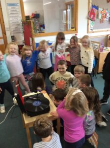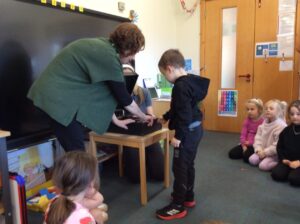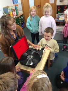 They had great fun learning how listening to music has changed over the years. The record player was great for listening to and swaying to some Bing Crosby tunes. They also looked at cassette tapes and CD’s which some of the children had seen before.