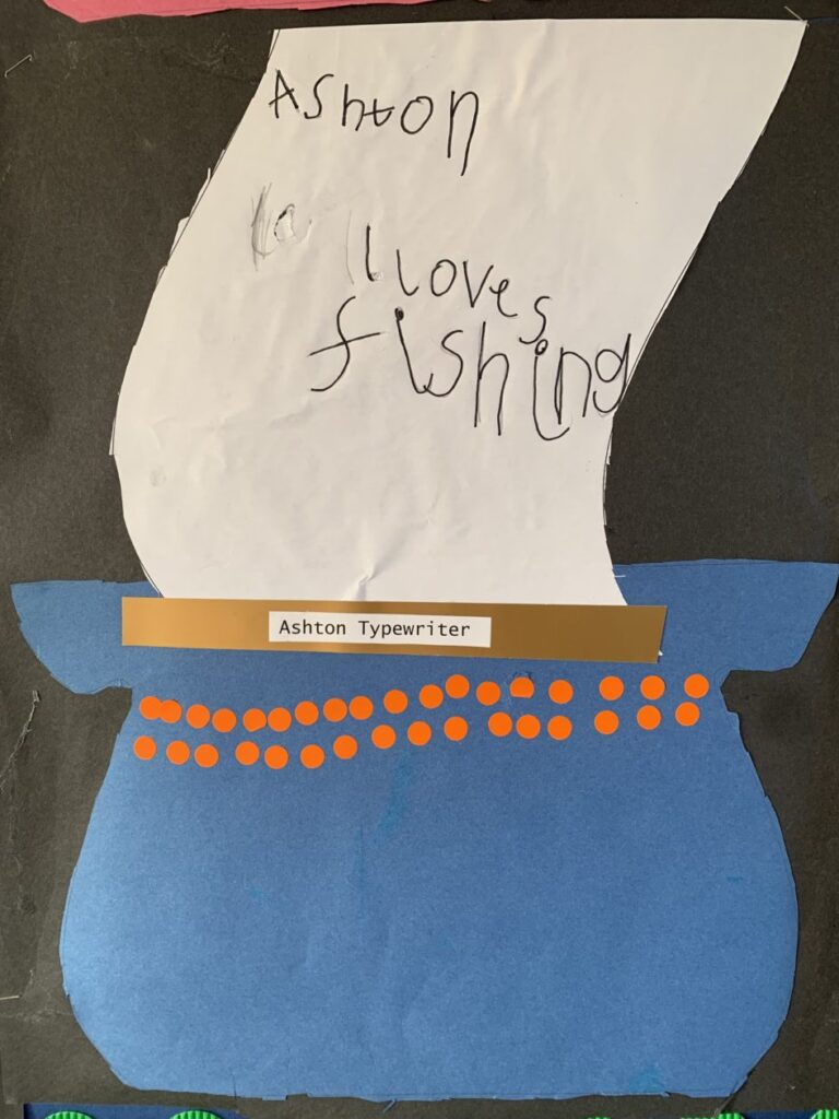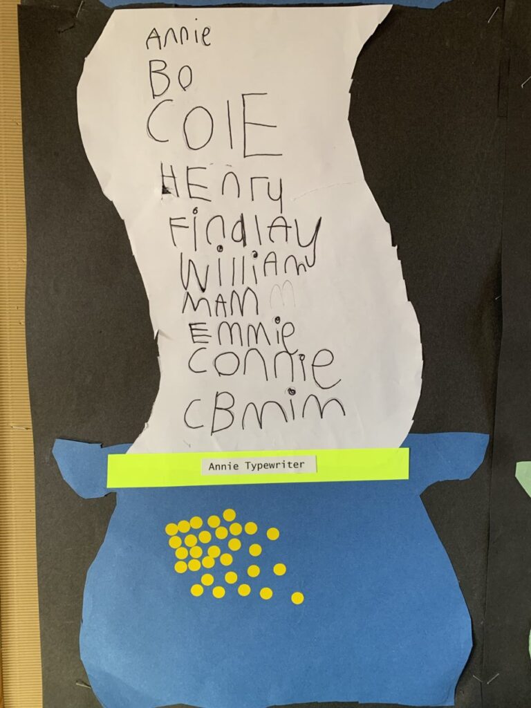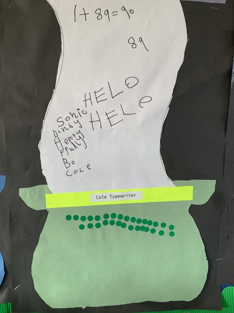 They made their own typewriters in art with Miss Whelan and decided what the paper would have typed on it as it came out of the top.