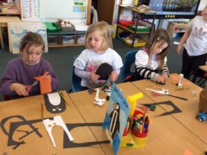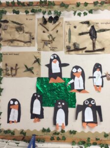 For number 1, the children made penguins like the character in the story. This was great for practising those scissor skills and listening to instructions.