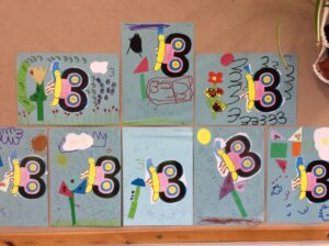 Number 3 was a butterfly so the children added lots of ‘3 things’ to their pictures