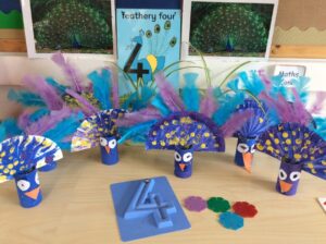 For number 4 the children made these beautiful peacocks and learned a few facts about them.