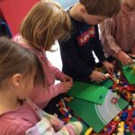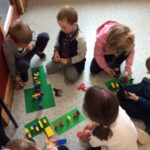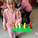 Number 5 was a jumpy kangaroo so the children made jumps out of lego. Great for their fine motor skills.
