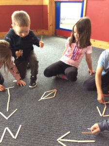 For number 6 they used 6 sticks to make their own shapes and designs. They also used plasticine to make a swamp scene with 6 snakes, 6 rocks etc. This was a great opportunity for communication for collaboration.