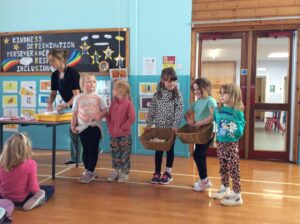 The primary 1’s loved using non-standard units to measure the capacity of different containers. Unfortunately it was too windy to take this learning outdoors this year so the mop was used frequently.