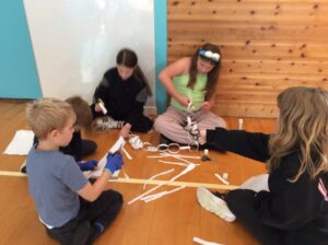 The children were put into mixed age groups of 5-6 pupils. They were given a set of materials and had to work together to create a paper chain. There was a time limit and limited resources.