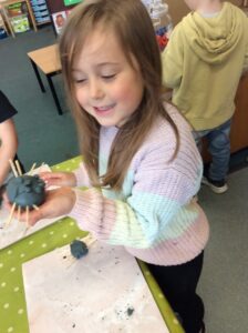 The Primary One children have been learning the letter formations this term. This begins as a character in a story, a little rhyme, some creativity and lots of practise.