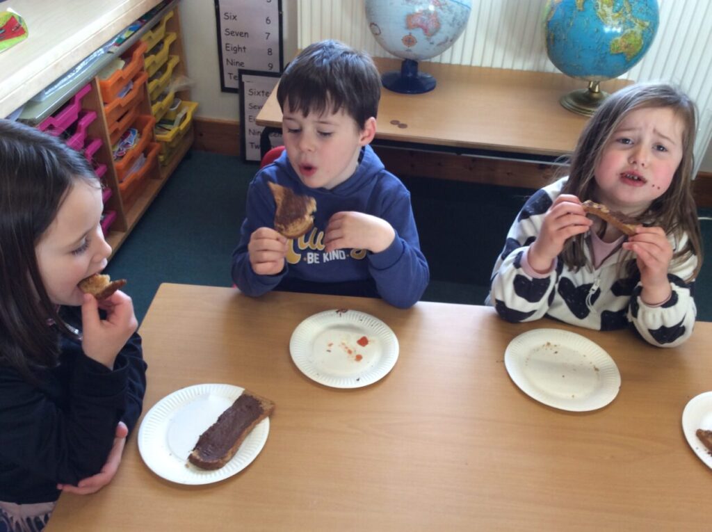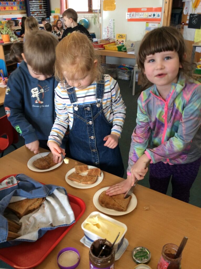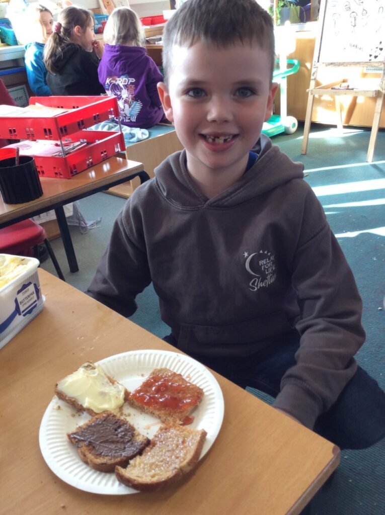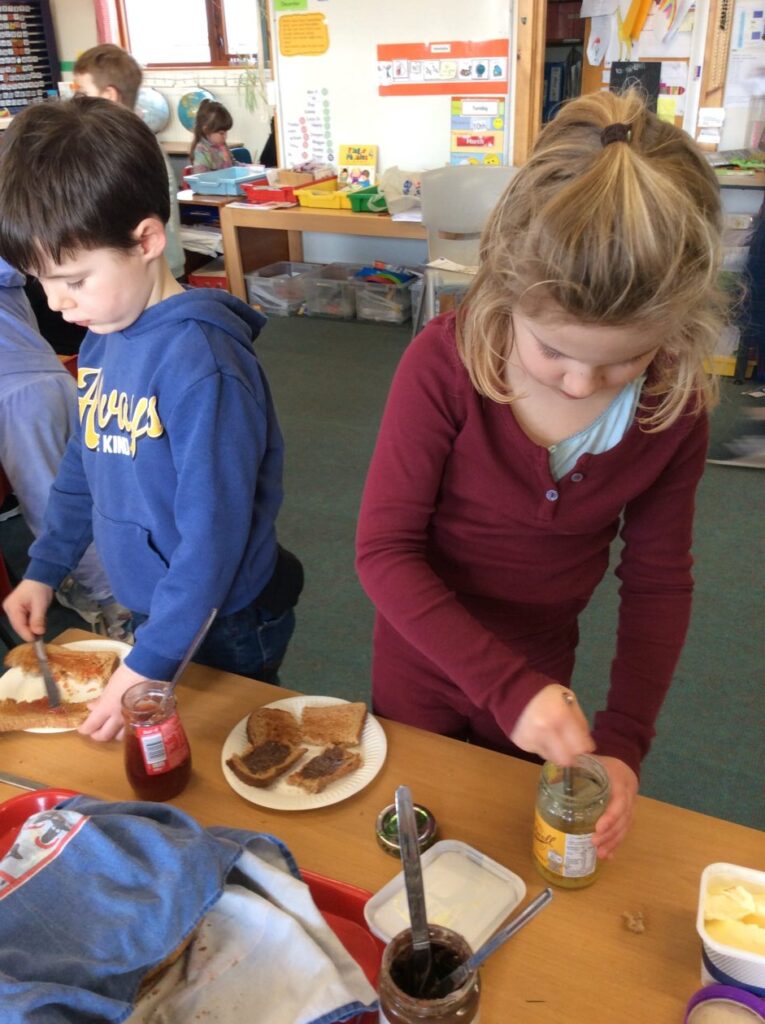 Last term the children were learning about fractions. Their favourite activity was making toast! They had to then cut up their toast and put toppings on their halves and quarters. There was lots of discussion about making fractions equal sized as well as lots of chat about their favourite toppings.