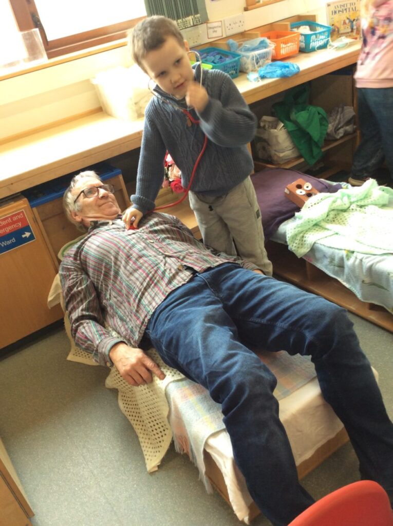 The children moved on from wanting to help treat pets to help treat each other. They asked for a hospital, so after a lot of chat about what we would need they set it up.