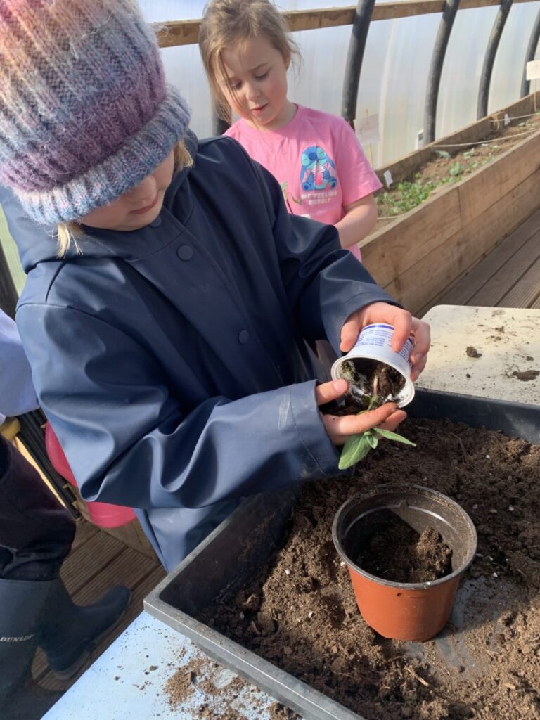 A huge thankyou to the parents who helped to water the plants throughout the Easter holidays. They have fairly shot up. The sunflowers were ready to be re-potted into bigger pots so the children have been busy doing that and lots of watering this week.