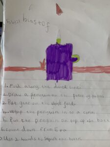They had great fun seeing how high the penguins could be blasted. The Primary two Children have been learning how to write instructions so did a fantastic job explaining how to do this STEM challenge.