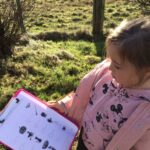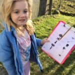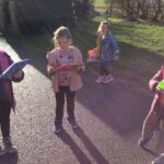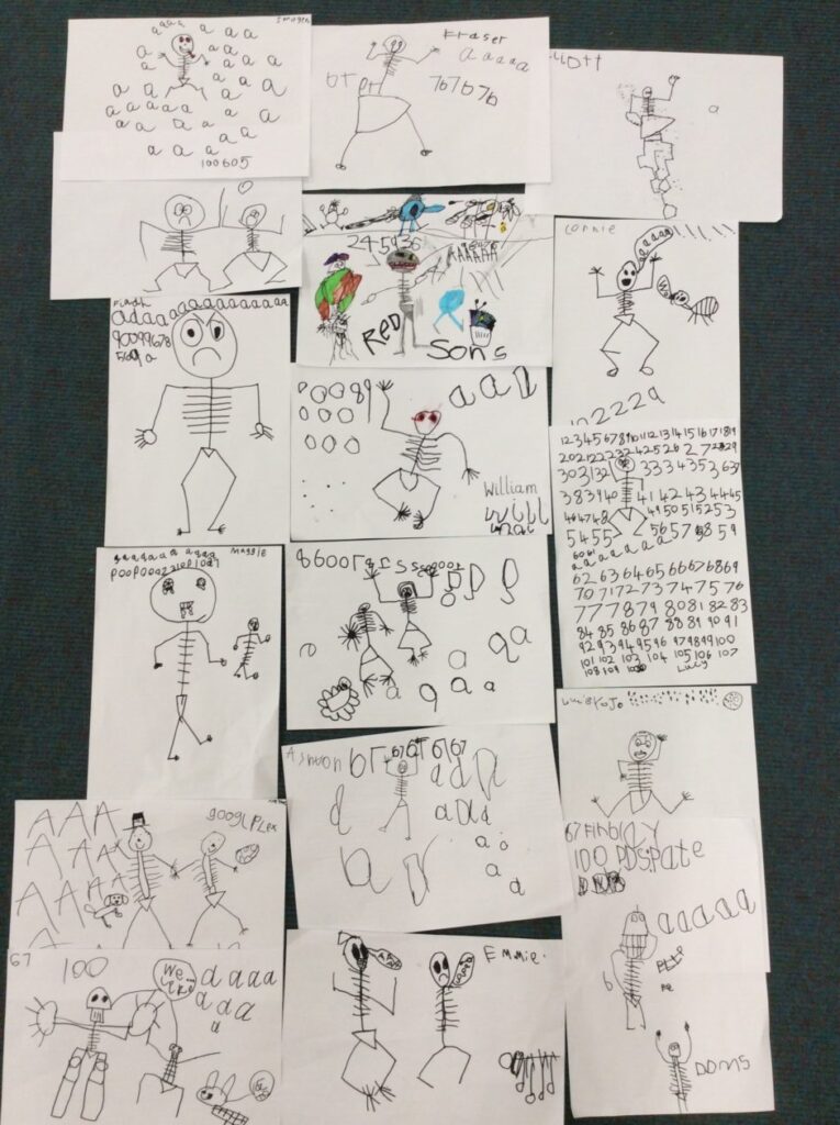 It was such a nice morning that the class went out and did a scavenger hunt for spooky images hidden around the school grounds.
