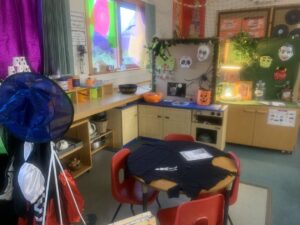 The children arrived back at school today and were delighted with a bit of Halloween fun in and around the classroom.