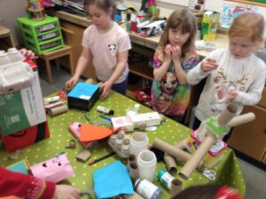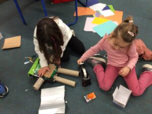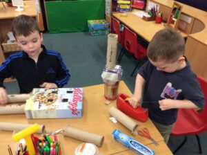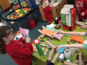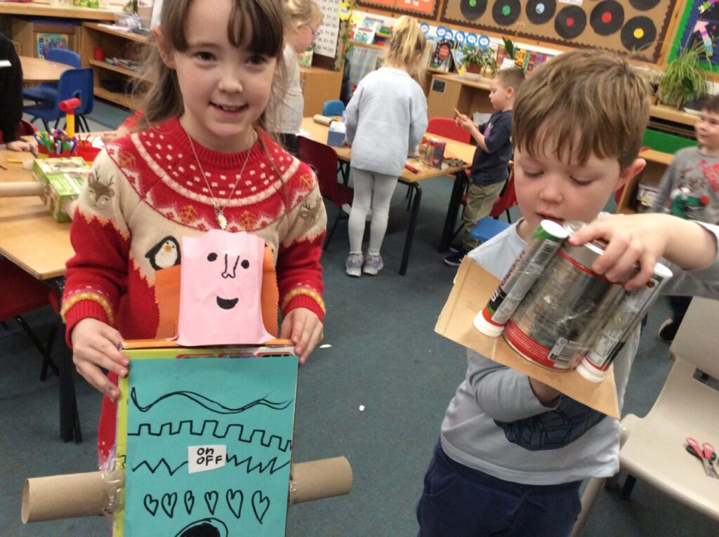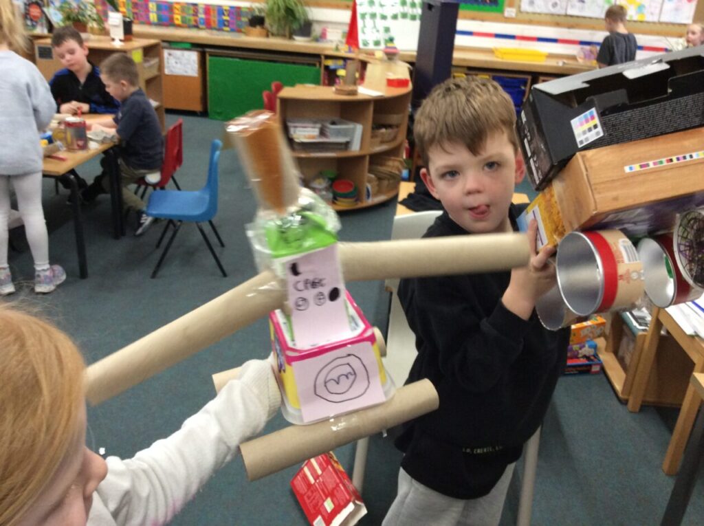 After listening to the story of The Bingle Bongle Bit Bot and how he fixed everything the children set to work making their own Bingle Bongle Bit Bot robots.