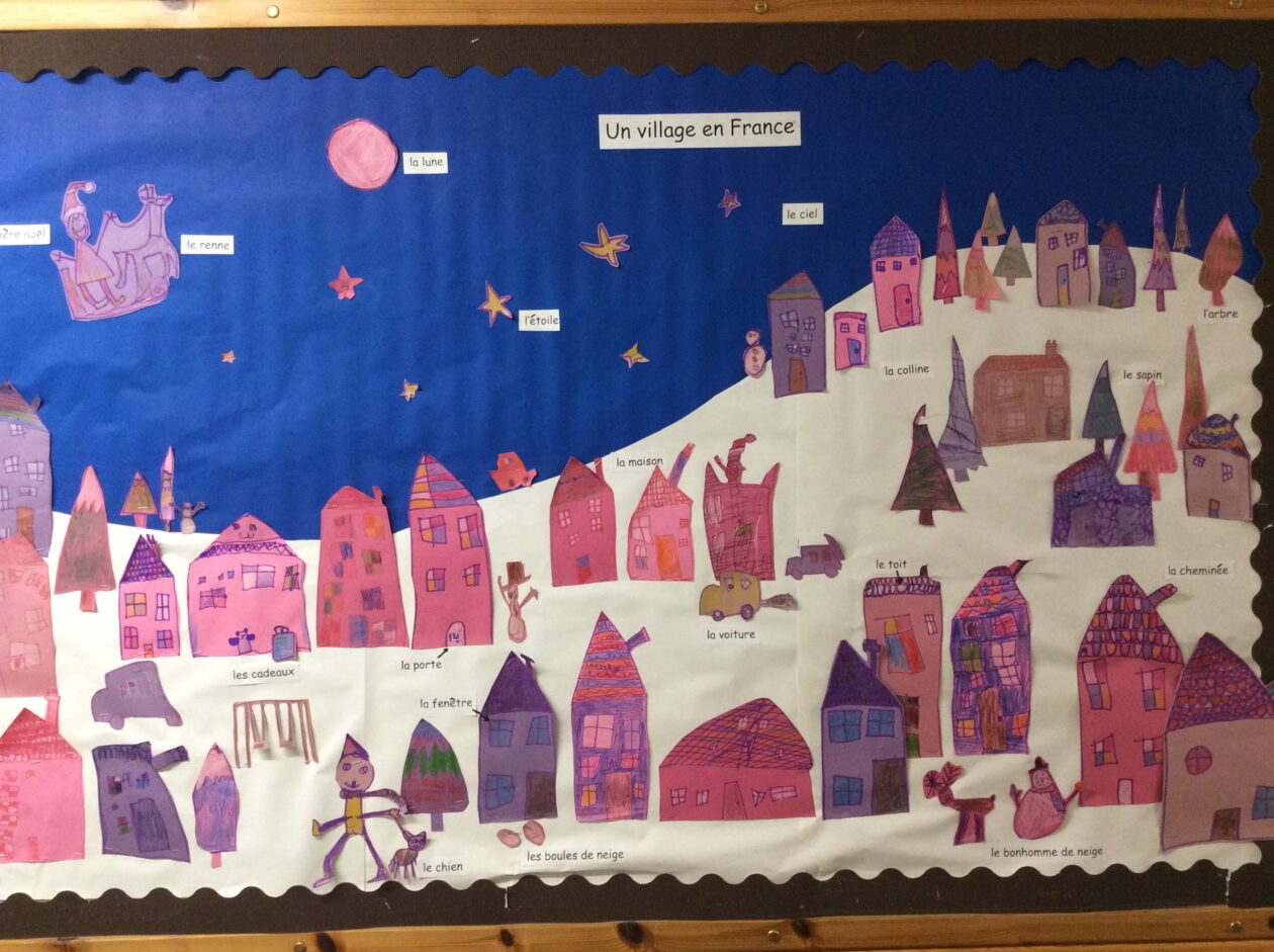 They practised the names of the colours in french by playing games, making artist pallets with paint and colouring ‘arc de soleil’ images.