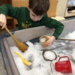 The children are enjoying playing with the animals and the ark in the classroom. They also have books and puzzles linked to this story and have had a go at Drawing Club too.