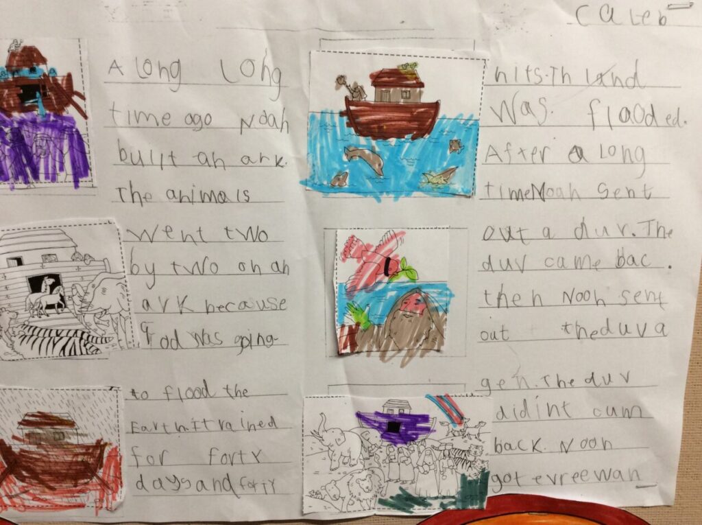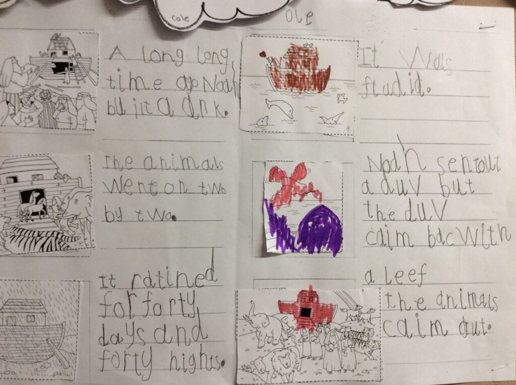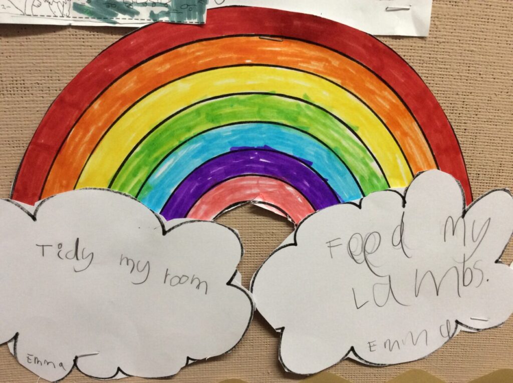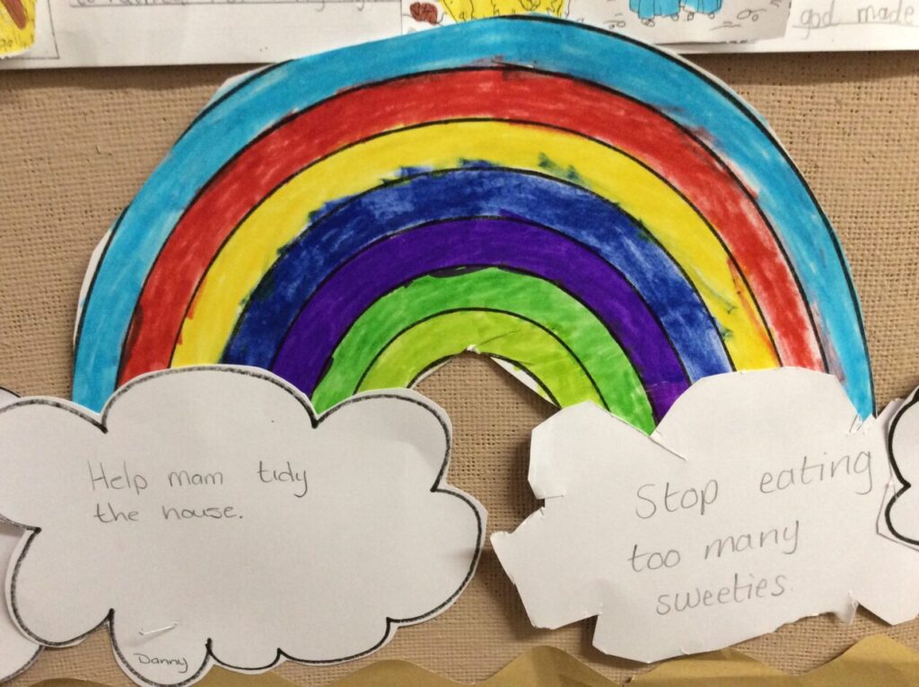 The children loved the story about Noah’s Ark. The story tells of God’s promise to never again flood the Earth and his creation of a rainbow. The children made their own promise, or New Years Resolutions, which they wrote on clouds at each side of their rainbow.