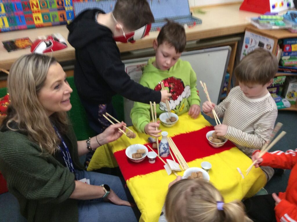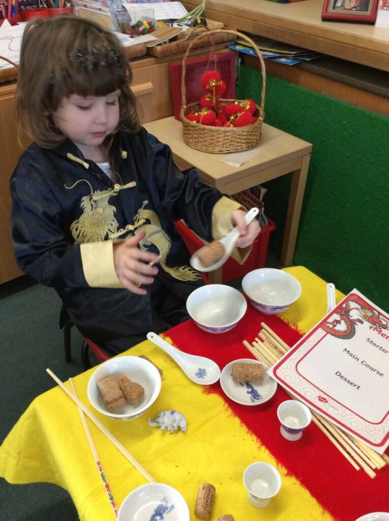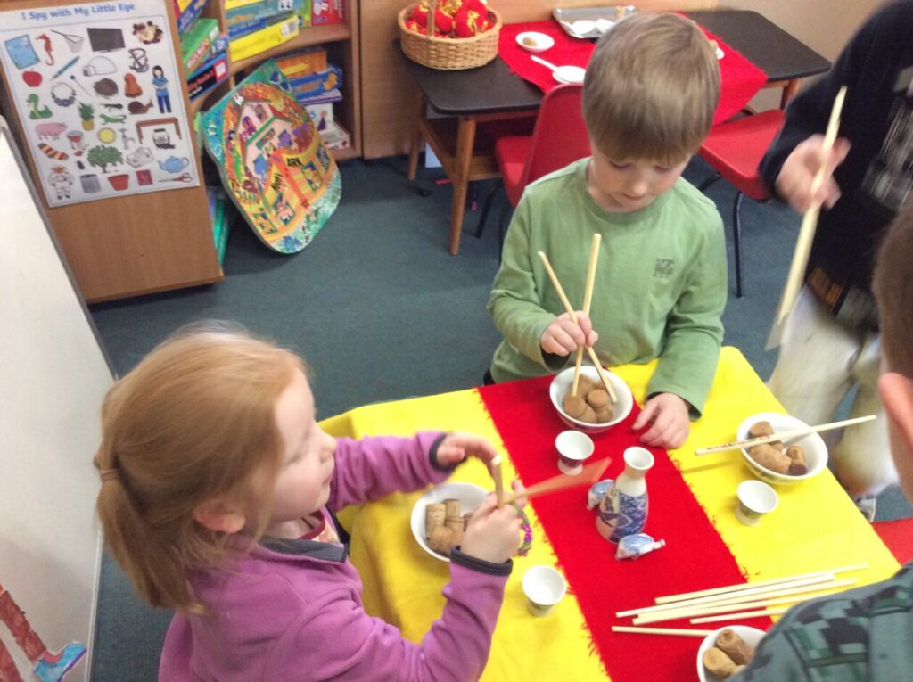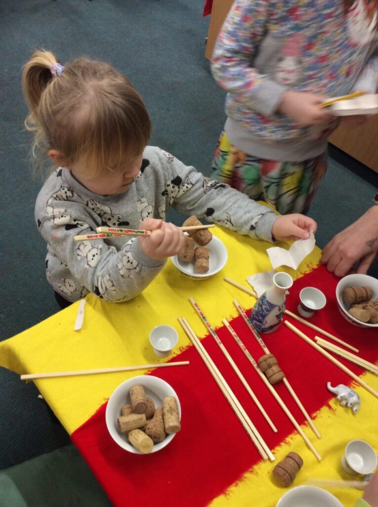 We set up a little Chinese Restaurant in class and the children have been trying out chopsticks.