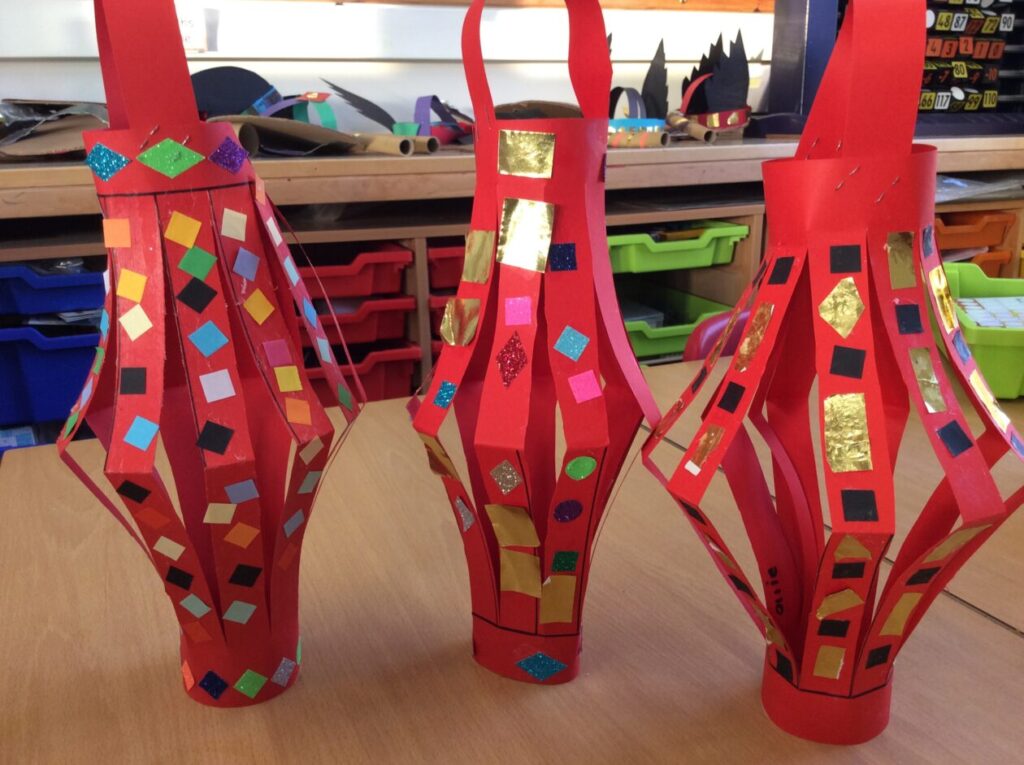 The children loved the chinese lanterns which were hanging up and the dragon so they had a go at making their own lanterns.