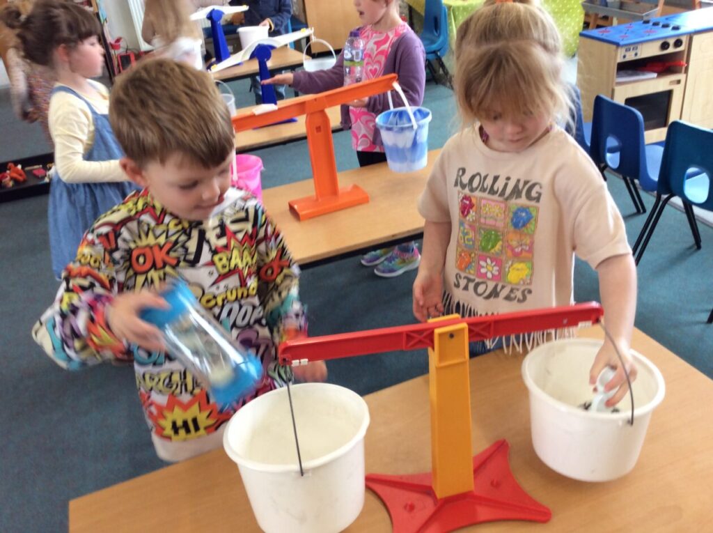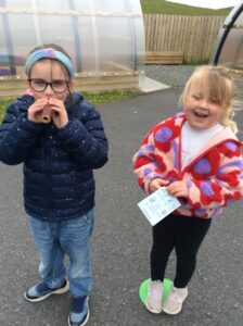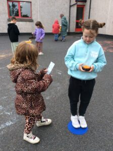 For number 2 the children made little nest models with two eggs made of plasticine, they also had two feathers for tickling each other like the character in the story. They worked with a partner to collect outdoor objects (two of each) and create a picture together.