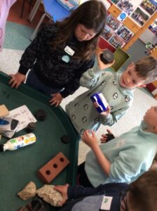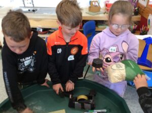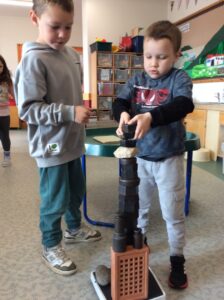 For number 6 they used 6 sticks to make their own shapes and designs. They also used plasticine to make a swamp scene with 6 snakes, 6 rocks etc. This was a great opportunity for communication for collaboration.