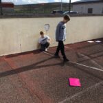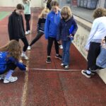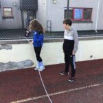 After with a very long measuring tape, we split in to two groups  and we measured all the different sections and lines.