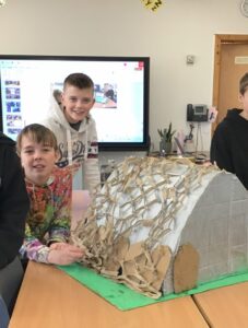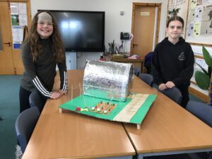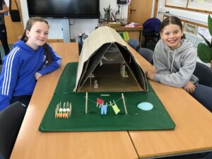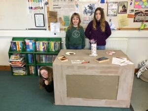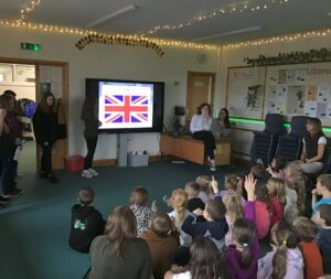 We all went into partners of two or three so it was easy to decide what we wanted to talk about from the term. We spoke about our STEM challenges, Anderson shelter models and afternoon in the polycrub and did a quiz with the school about the Axis and Allies flags.