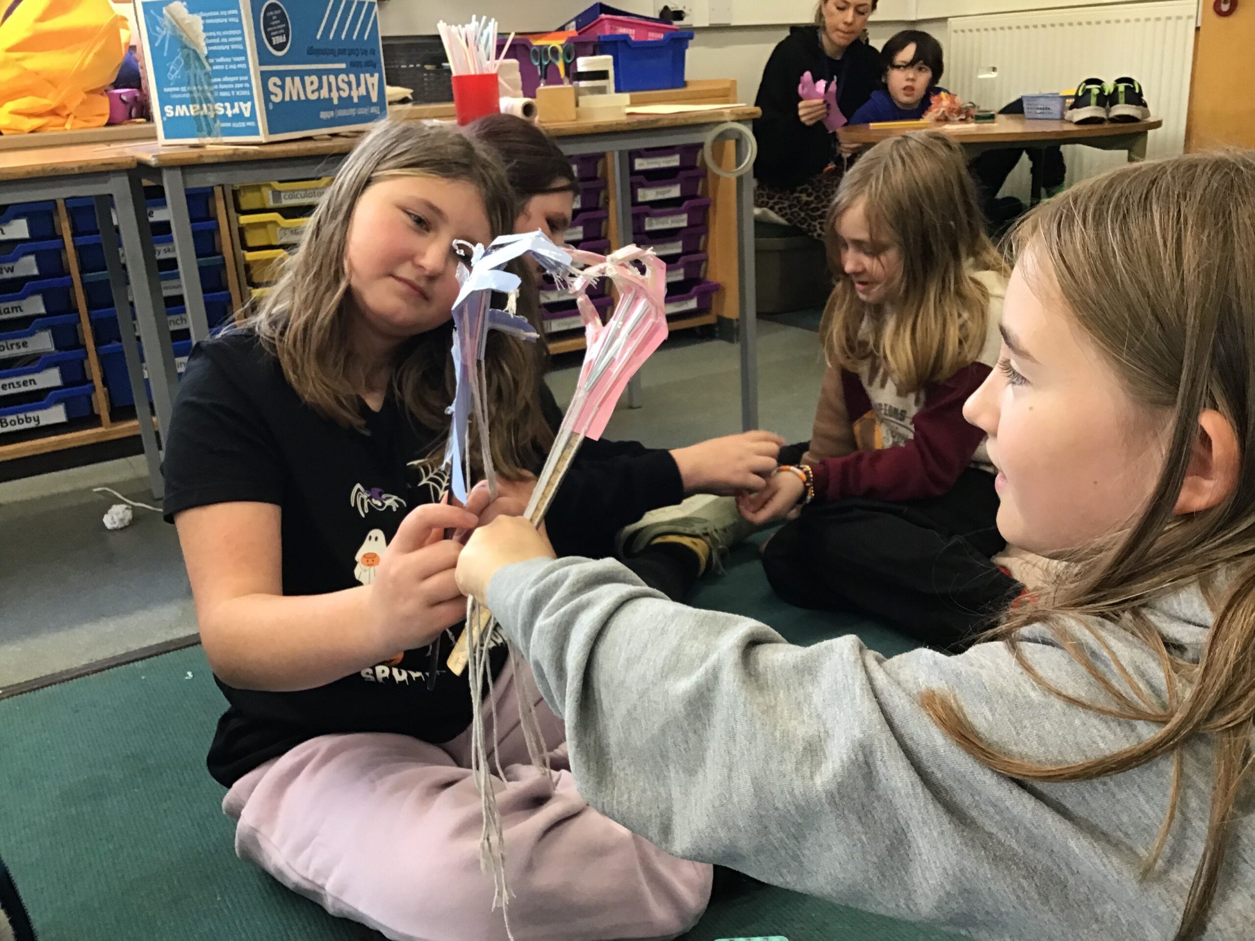 Once we had finished, we let the P1s keep the glowsticks and make them into bracelets (they really loved it)!