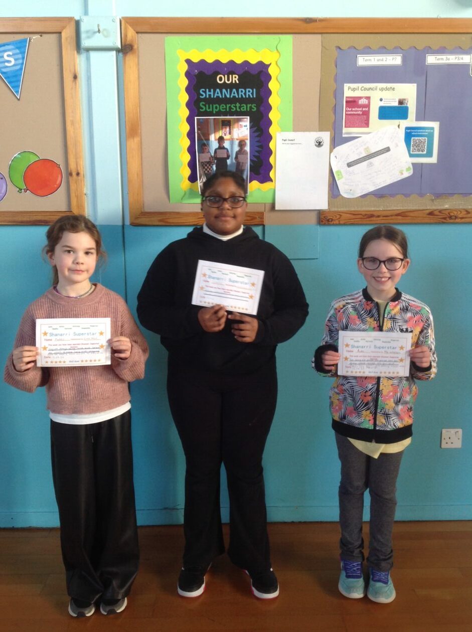 SHANARRI’s this week are- Liam, Andrew, Ollie B, Eve, Frankie, Bobby G (P5), Jensen, Ole and Freyja.