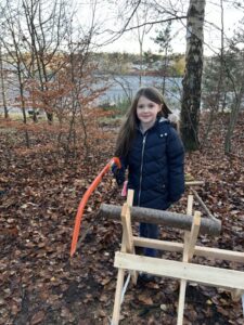 This term we have been taking part in Forest School, spending lots of time exploring and learning in our wonderful wooded area. One of our favourite activities was using the bow saw and sawhorse—under careful supervision—to create our very own tree cookies.