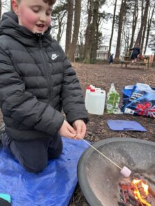We also enjoyed gathering around the campfire, where we toasted marshmallows and made delicious s’mores. It was a fantastic way to learn new skills, work together, and enjoy the outdoors.